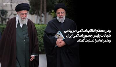 حضرت آیتالله خامنهای در پیامی شهادت حجتالاسلام والمسلمین سیّدابراهیم رئیسی رئیسجمهور اسلامی ایران، دکتر امیرعبداللهیان وزیر امور خارجه، حجتالاسلاموالمسلمین آلهاشم نماینده ولیفقیه در آذربایجان شرقی، دکتر رحمتی استاندار آذربایجان شرقی و همراهان گرامی ایشان در سانحه هوایی را تسلیت گفتند.