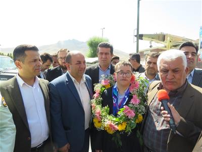 «شاهو محمدی» ورزشکار نابغه سندروم داون و قهرمان شنای المپیک ویژه برلین با استقبال پرشور مردم به زادگاهش مهاباد بازگشت.