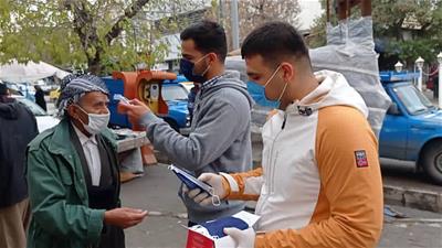 پیشگامان بسیج با تب سنجی و توزیع ماسک رایگان به یاری مردم شتافتند