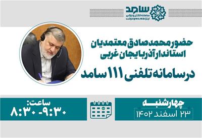 محمدصادق معتمدیان استاندار آذربایجان غربى، در سامانه ارتباط مردم و دولت (سامد) ١١١ حضور می یابد.