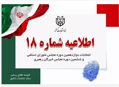 ستاد انتخابات کشور با انتشار اطلاعیه شماره 18 اعلام کرد: فرآیند اخذ رای در تمامی شعب سراسر کشور ساعت 8 صبح روز جمعه 11 اسفندماه آغاز میشود.