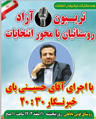 تریبون آزاد انتخابات مجلس با حضور حسینی بای مجری مطرح کشوری در روستای قوپی باباعلی مهاباد برگزار می شود.